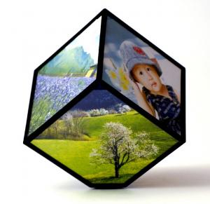 One of our newest products! With each side measuring 10 x 10 cm the cube allows you to present six traditional paper photos. One of the corners contains a mechanism that will slowly rotate the cube to ensure that all the photos are displayed. This unusual effect will surely attract attention of any potential customer. The globe's motor is powered by a AAA type battery and thus can be placed almost anywhere.