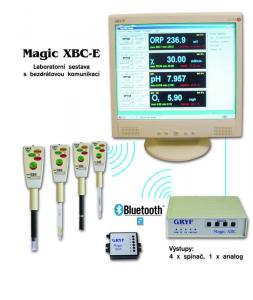 This laboratory measuring instrument is completely wireless and enables the user to measure up to 4 values (pH, ORP, temp.,oxy.,conductivity, etc) at the same time. The PC interface includes outlets which can be allocated to any measuring channel which in turn can be used to control various levels of alrarms, titration controls, etc. System is designed to be multiple-user friendly. Each user can save his or her settings and measured values in nameable files. Calibration protocols and measuring history can be printed out. Alternative software applications include long distance viewing via internet(real-time), graph bar (which allows the user to view measured values in a graph form)and GSM software which allows the measured values to be sent to any computer or cell phone wirelessly. For many other features, please contact us at + 420 569 425 024.